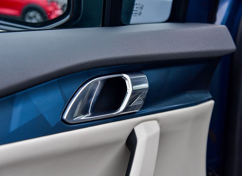 Tay nắm cửa và các chi tiết trang trí khác sử dụng nhựa mềm và các chi tiết kim loại, tăng cường vẻ hiện đại và cao cấp