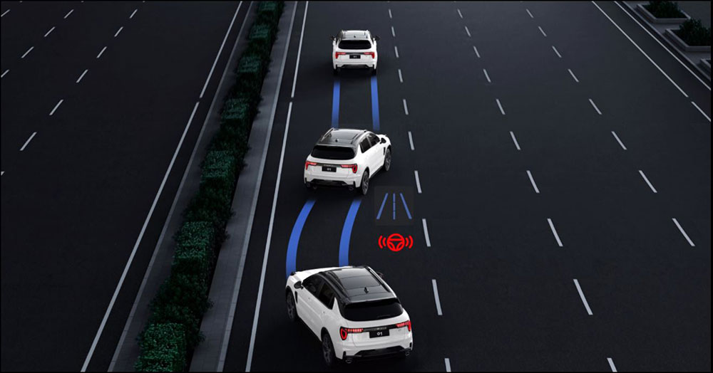 1. Hỗ Trợ Giữ Làn Đường sử dụng camera để theo dõi vạch kẻ đường và tự động điều chỉnh vô-lăng để giữ xe trong làn đường, giảm nguy cơ tai nạn do lệch làn.